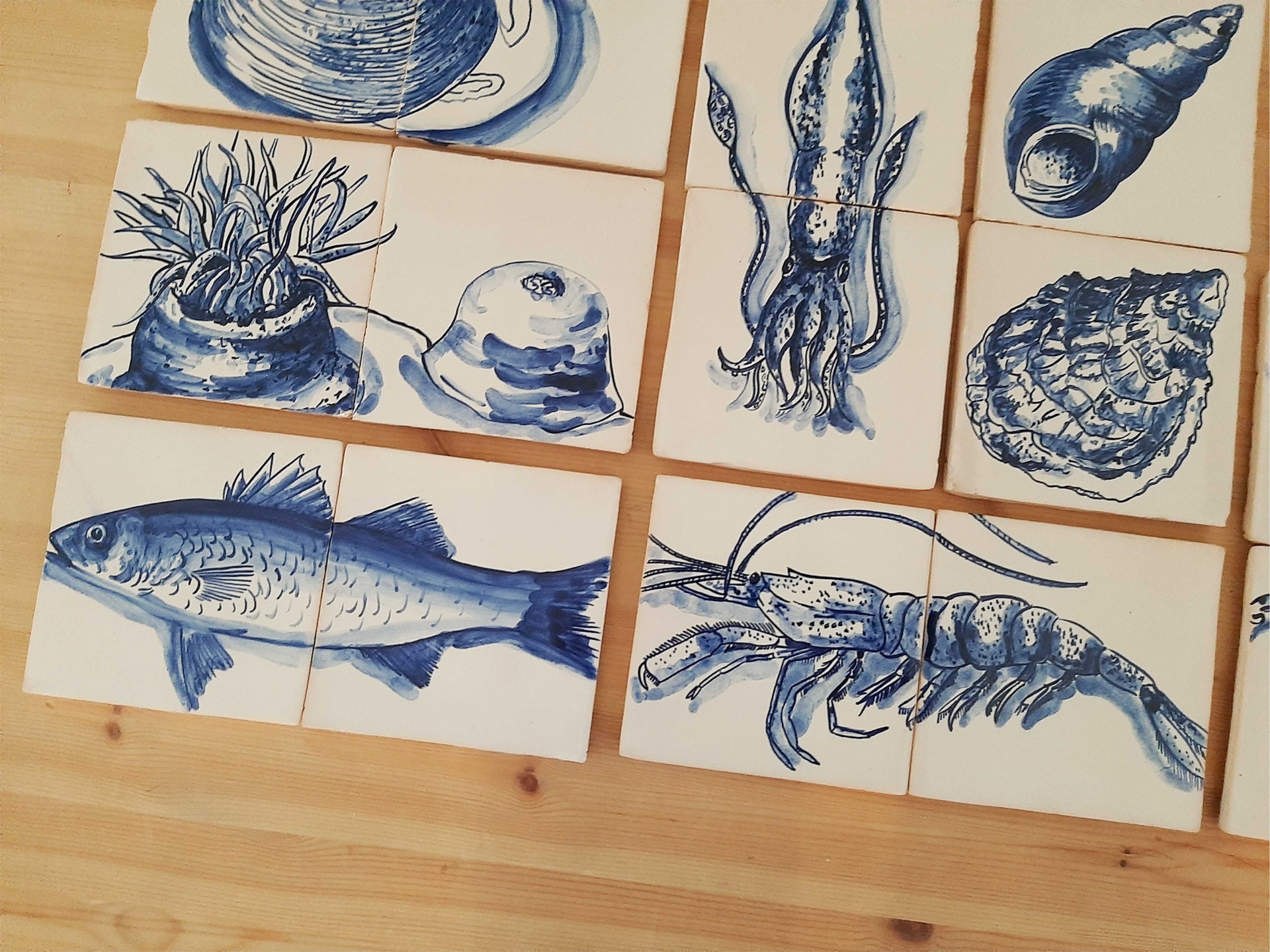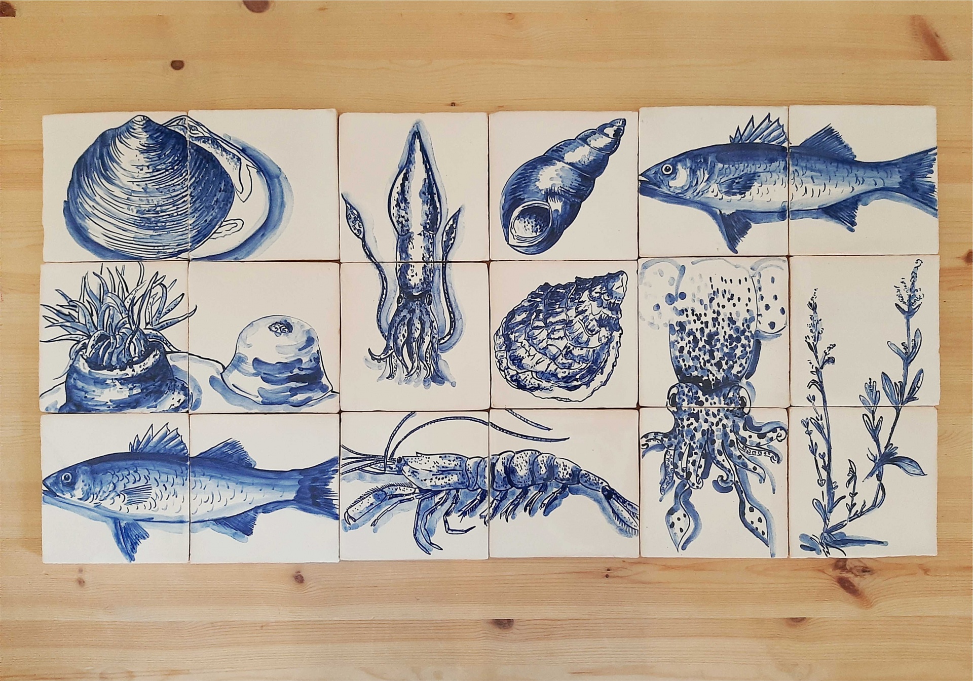 Tile Mural Marine Animals, Backsplash, Decorative tiles Handpainted, Sea Collection