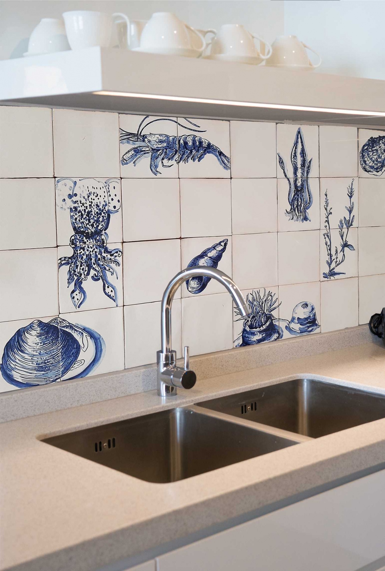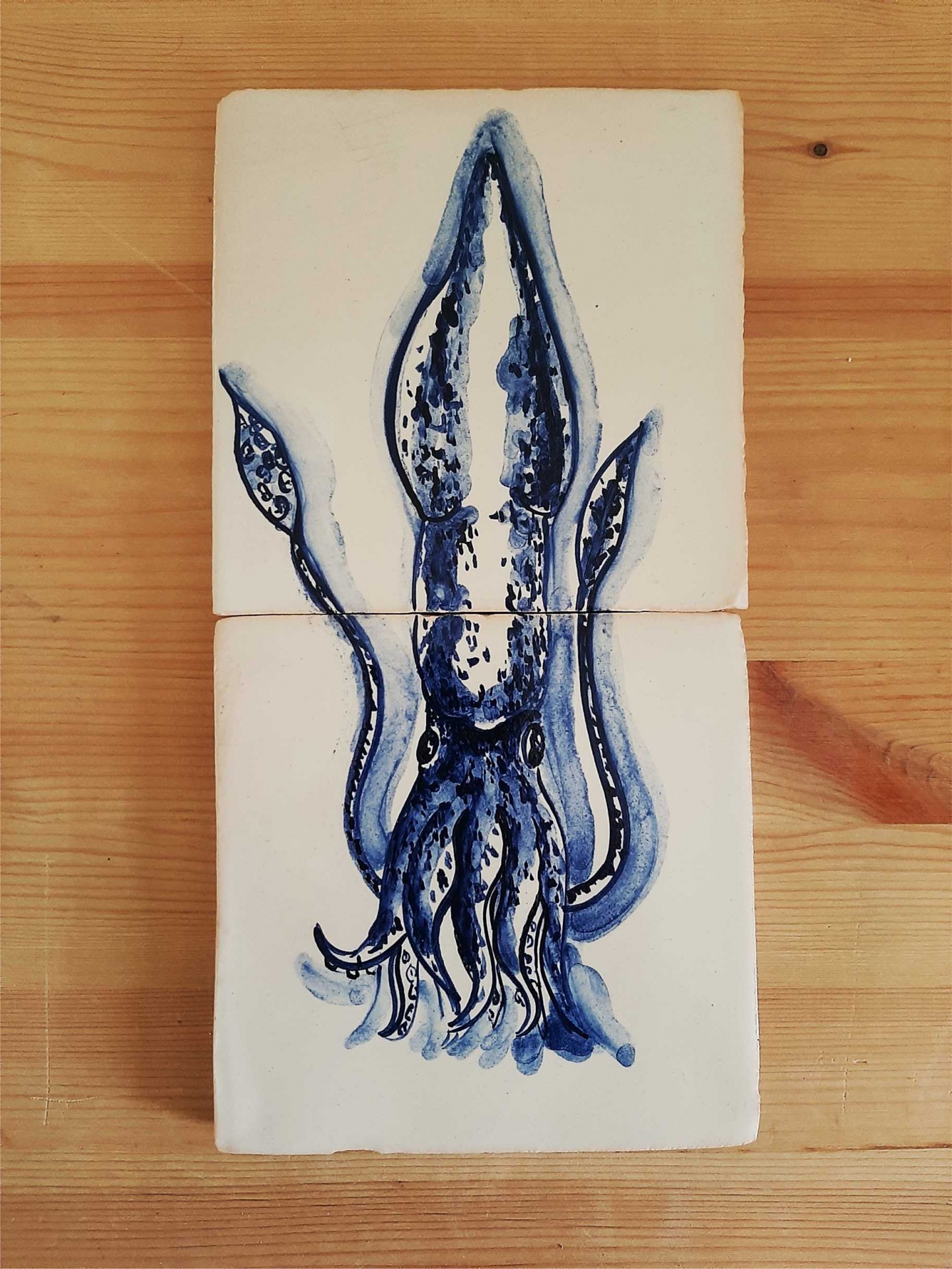 Each tile is painted by hand, using cobalt blue tones and timeless techniques that reflect Portugal’s deep connection to the sea.
