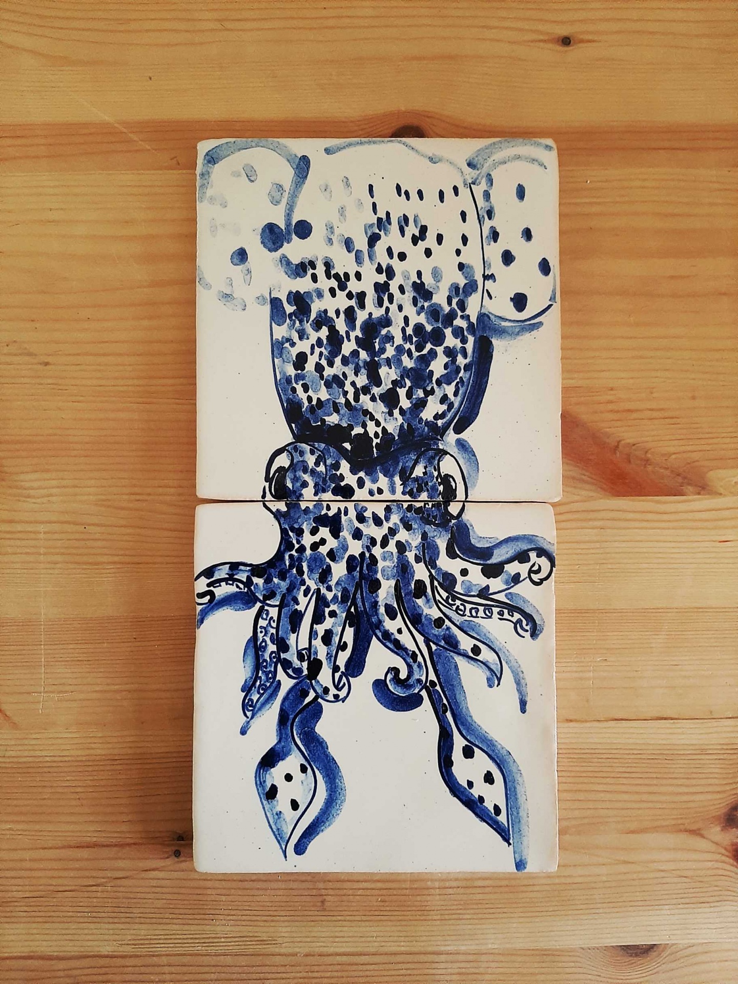 This original hand-painted Portuguese tile panel captures the beauty of marine life through traditional azulejo artistry.