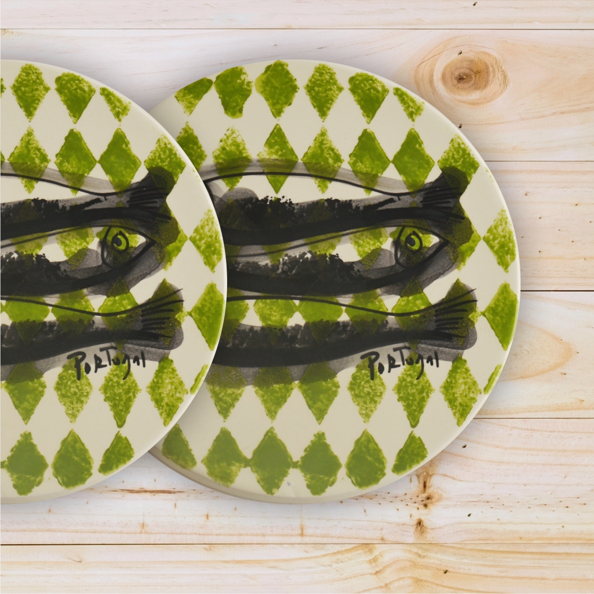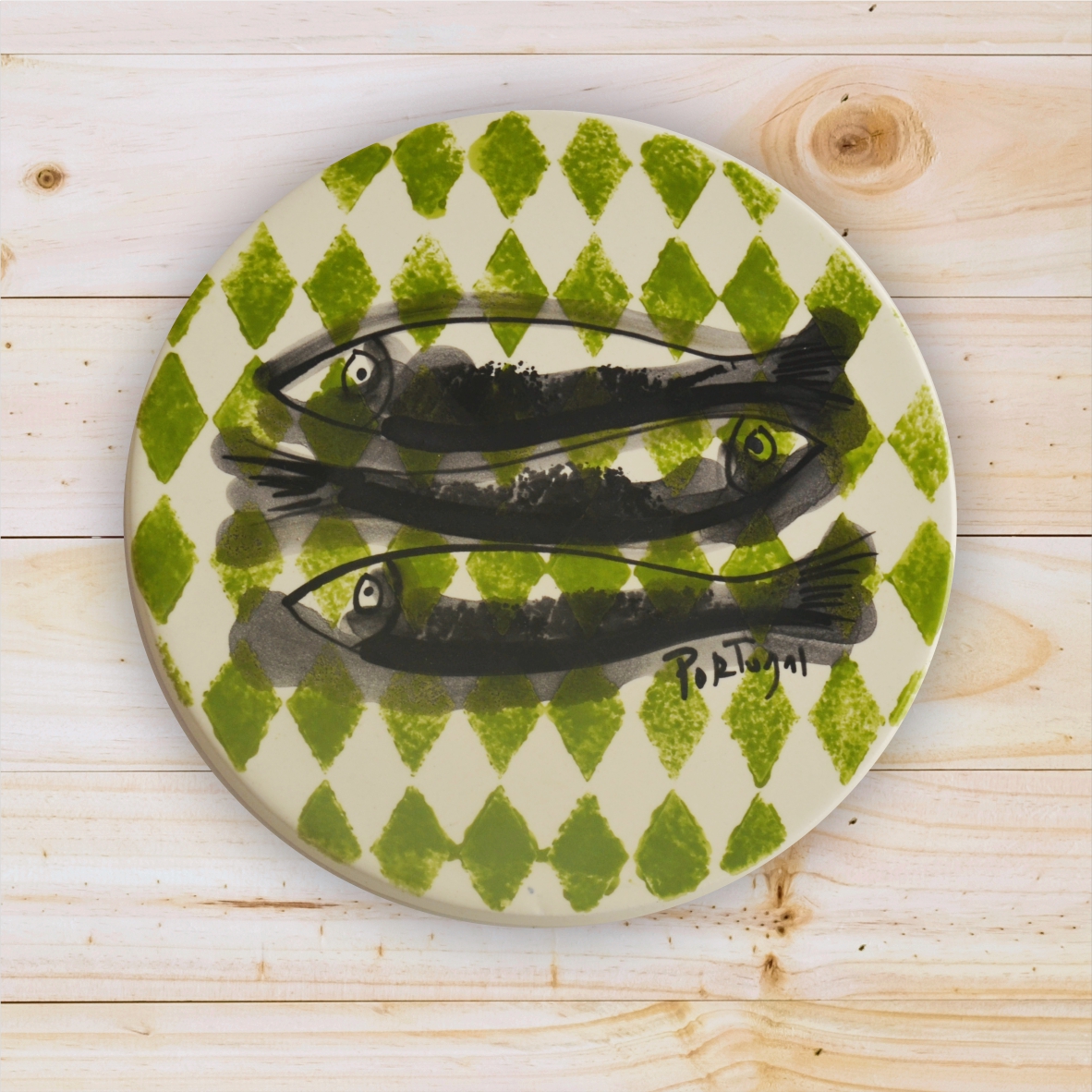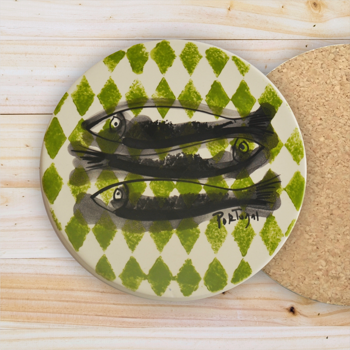 Ceramic Trivet , hand painted, Sardine Collection in Green