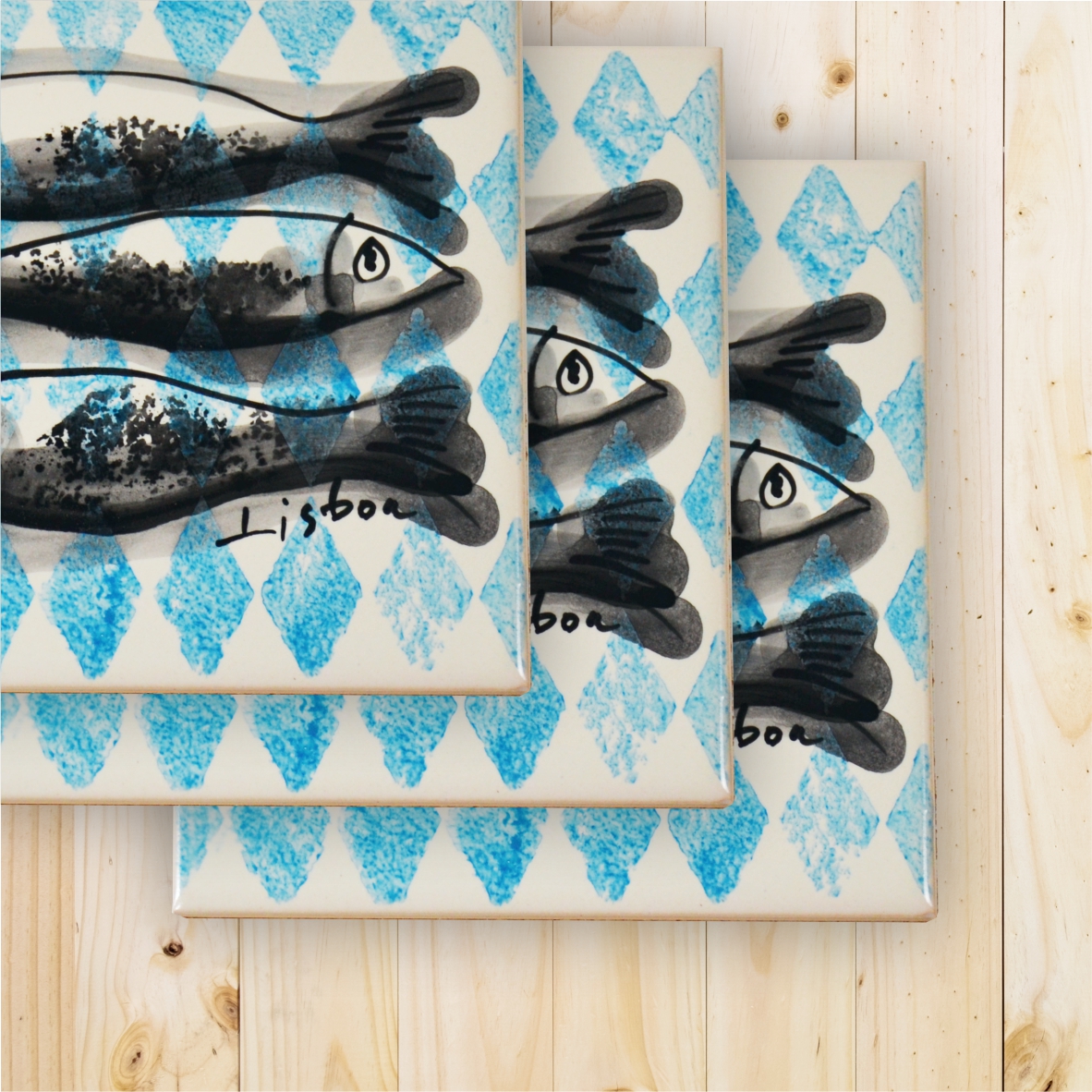 Ceramic Trivet , tile hand painted, Sardine Collection Blue Turquoise