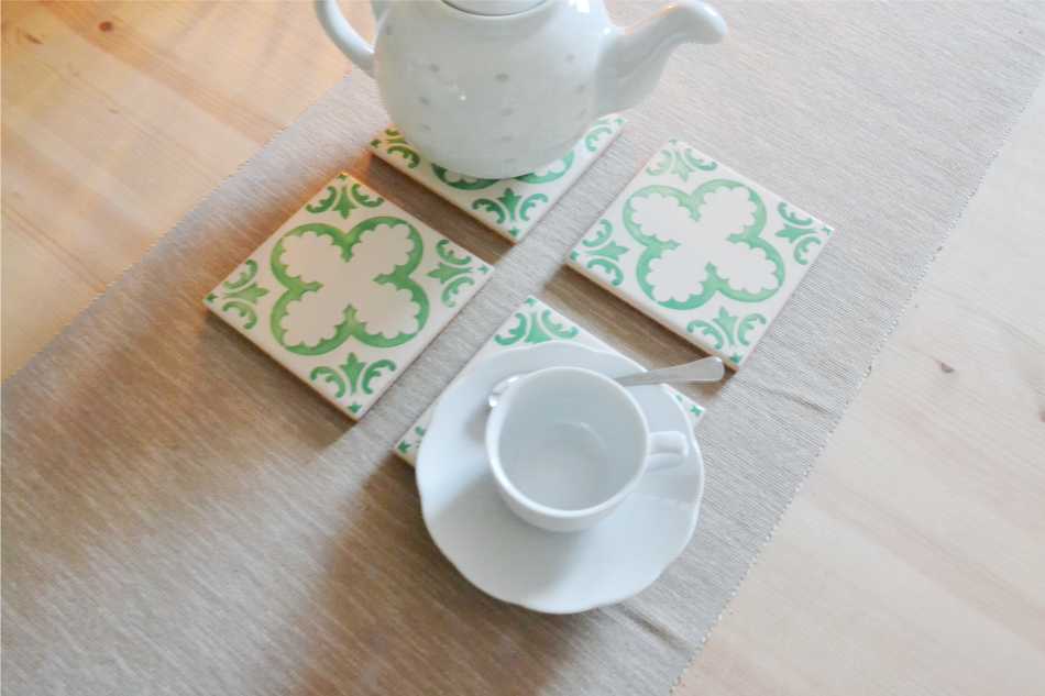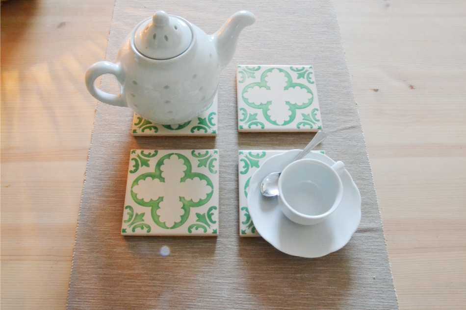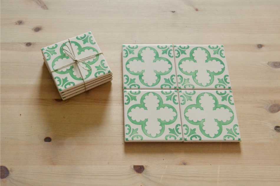 Coasters Set in portuguese tiles hand painted, green aqua, Set C