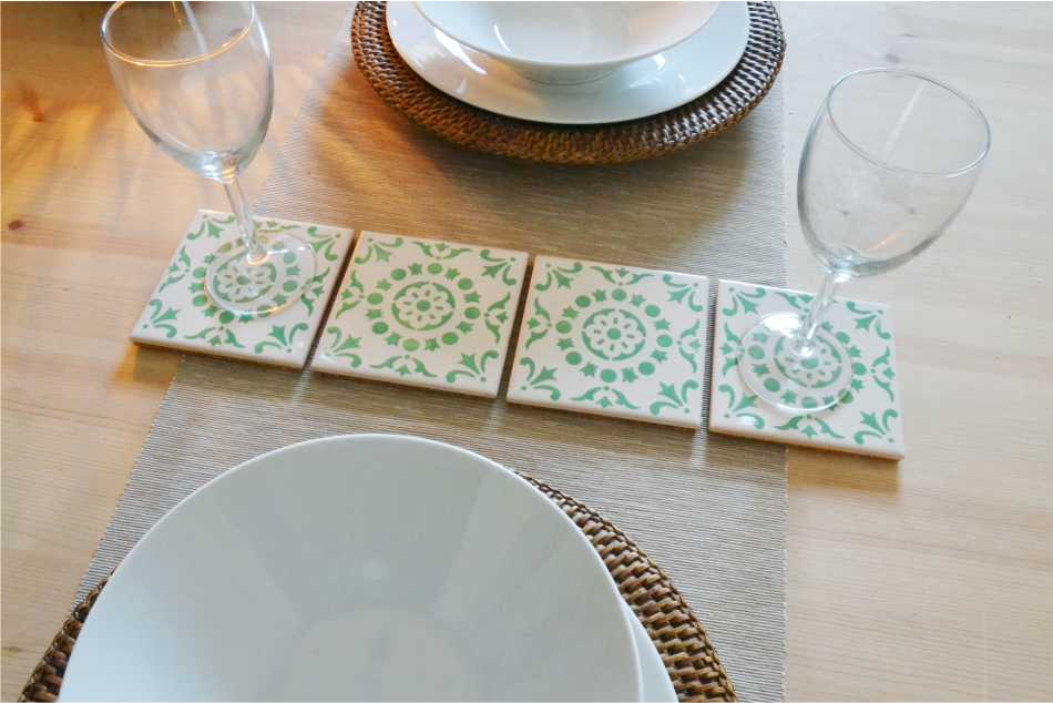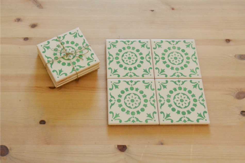 Coasters Set in portuguese tiles hand painted, green aqua, Set D