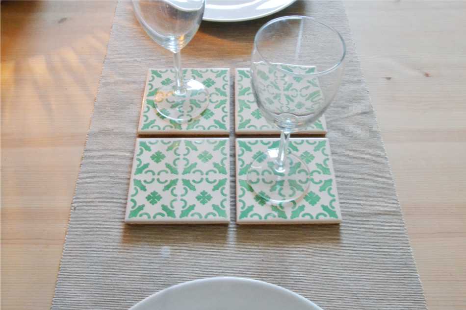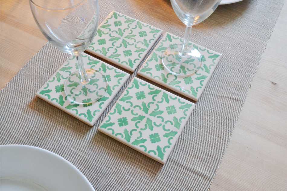 Coasters Set in portuguese tiles hand painted, green aqua, Set G