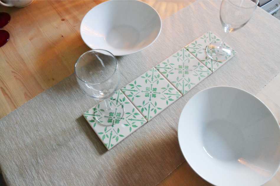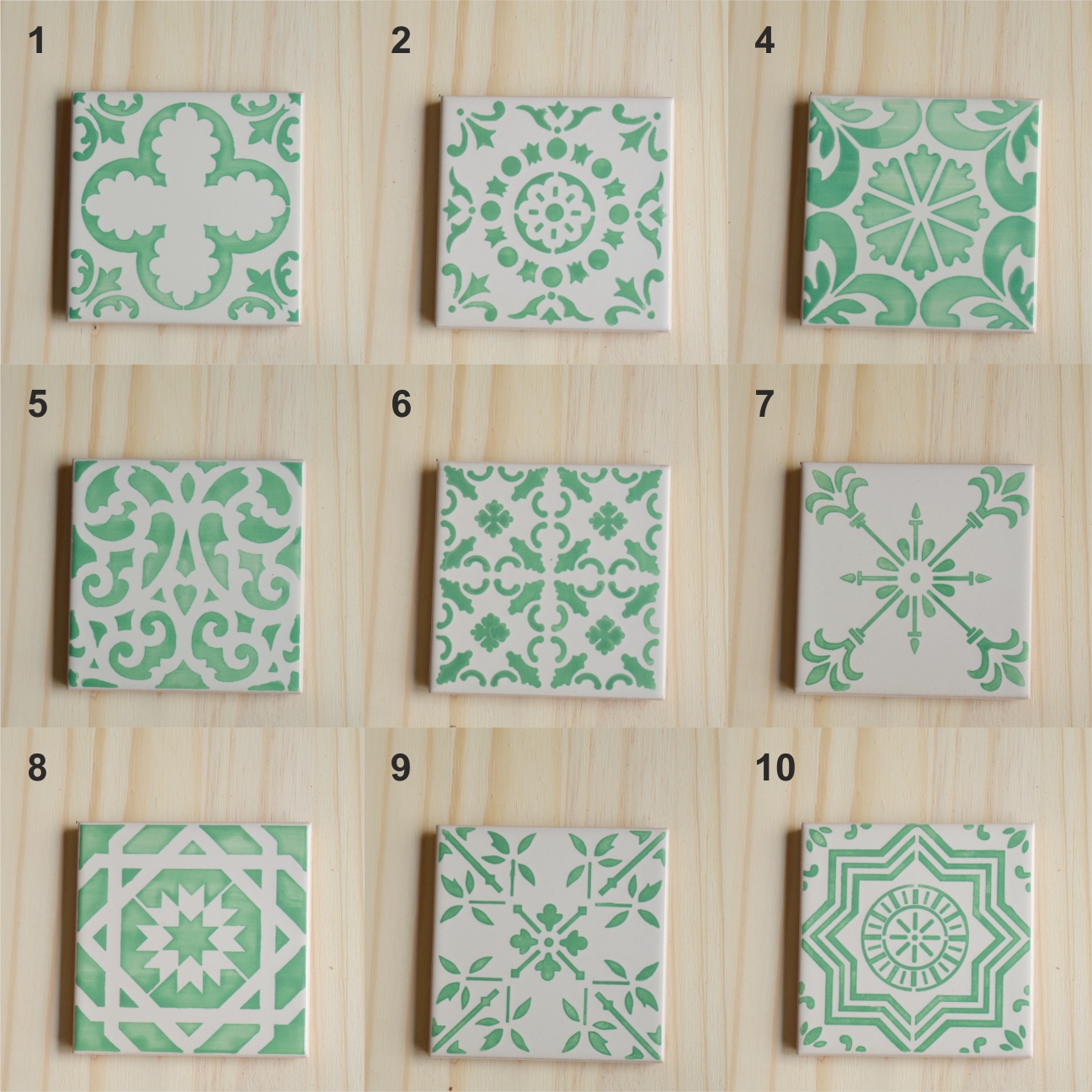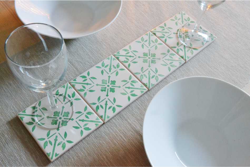 Coasters Set in portuguese tiles hand painted, green aqua, Set H