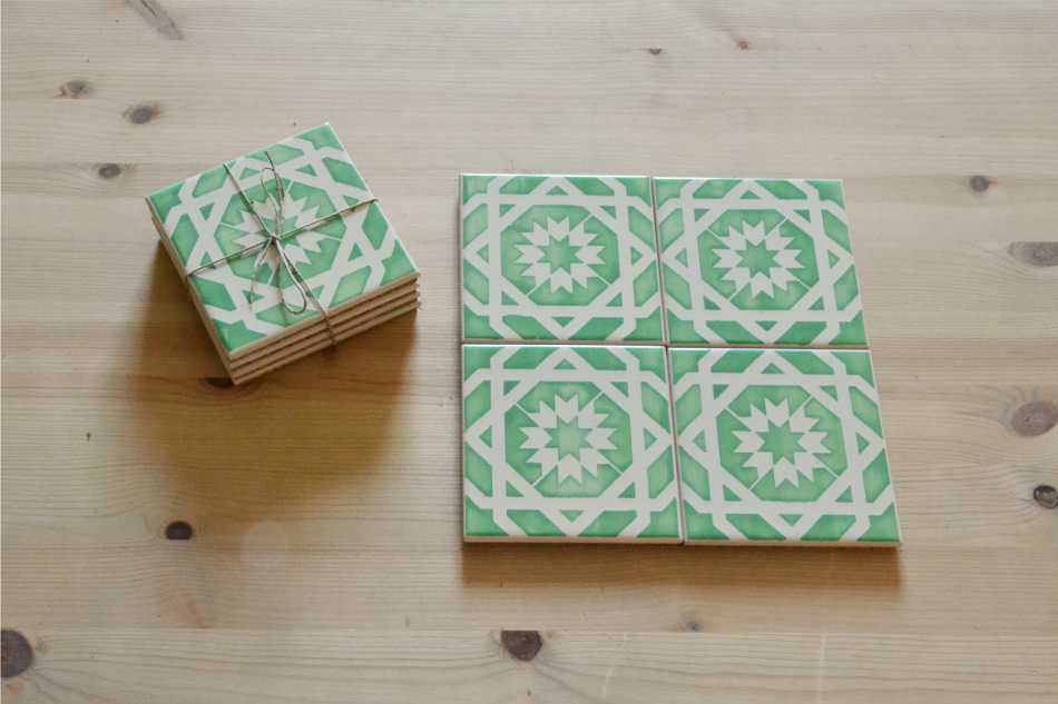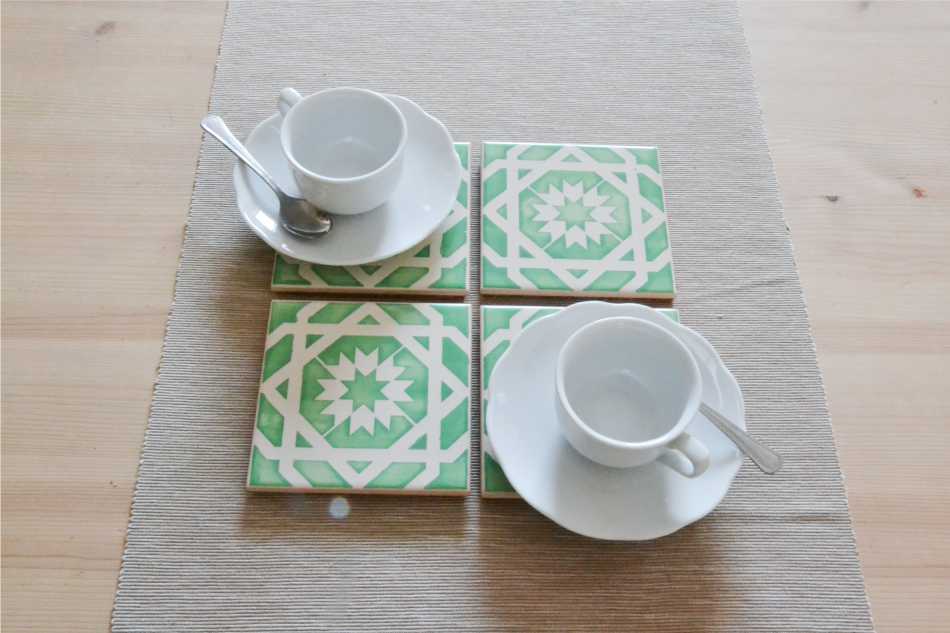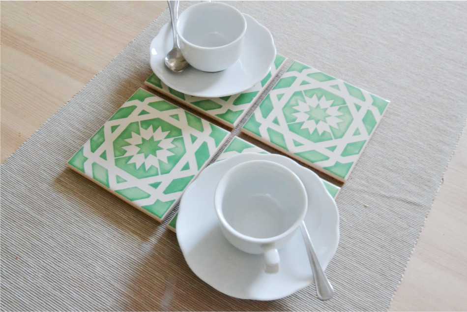 Coasters Set in portuguese tiles hand painted, green aqua, Set I