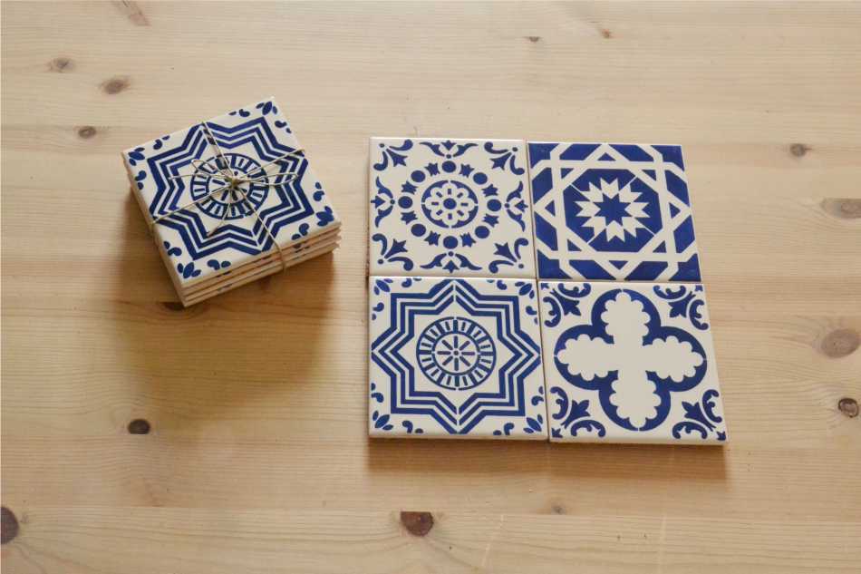 Coasters Set in portuguese tiles, hand painted, Set A