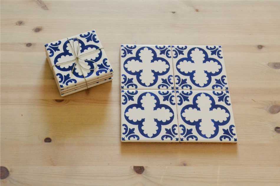Coasters Set in portuguese tiles, hand painted, Set C