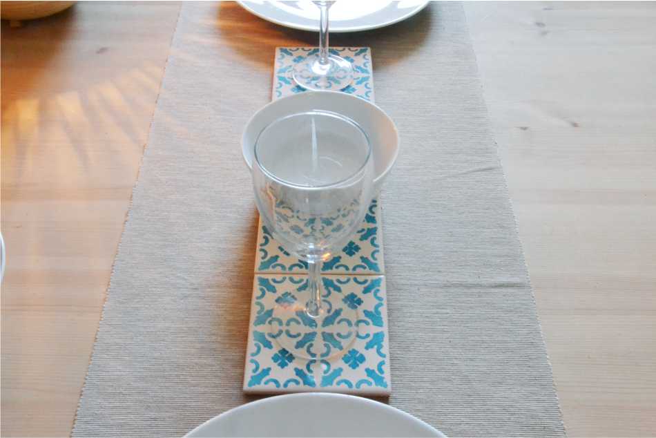 Coasters Set in portuguese tiles hand painted, turquoise, Set G
