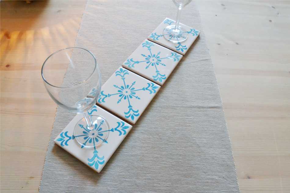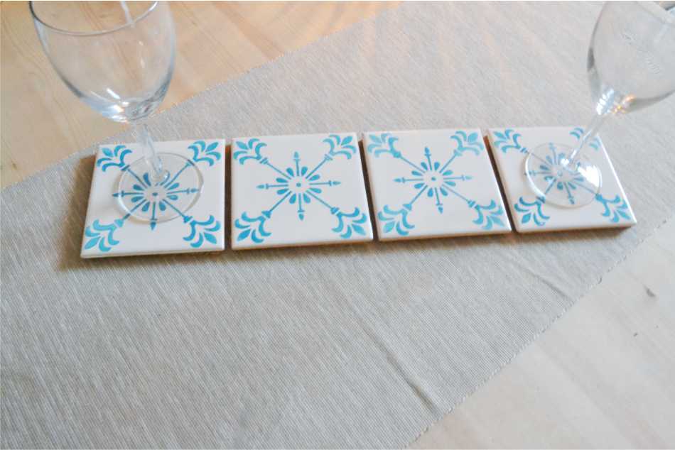 Coasters Set in portuguese tiles hand painted, turquoise, Set H