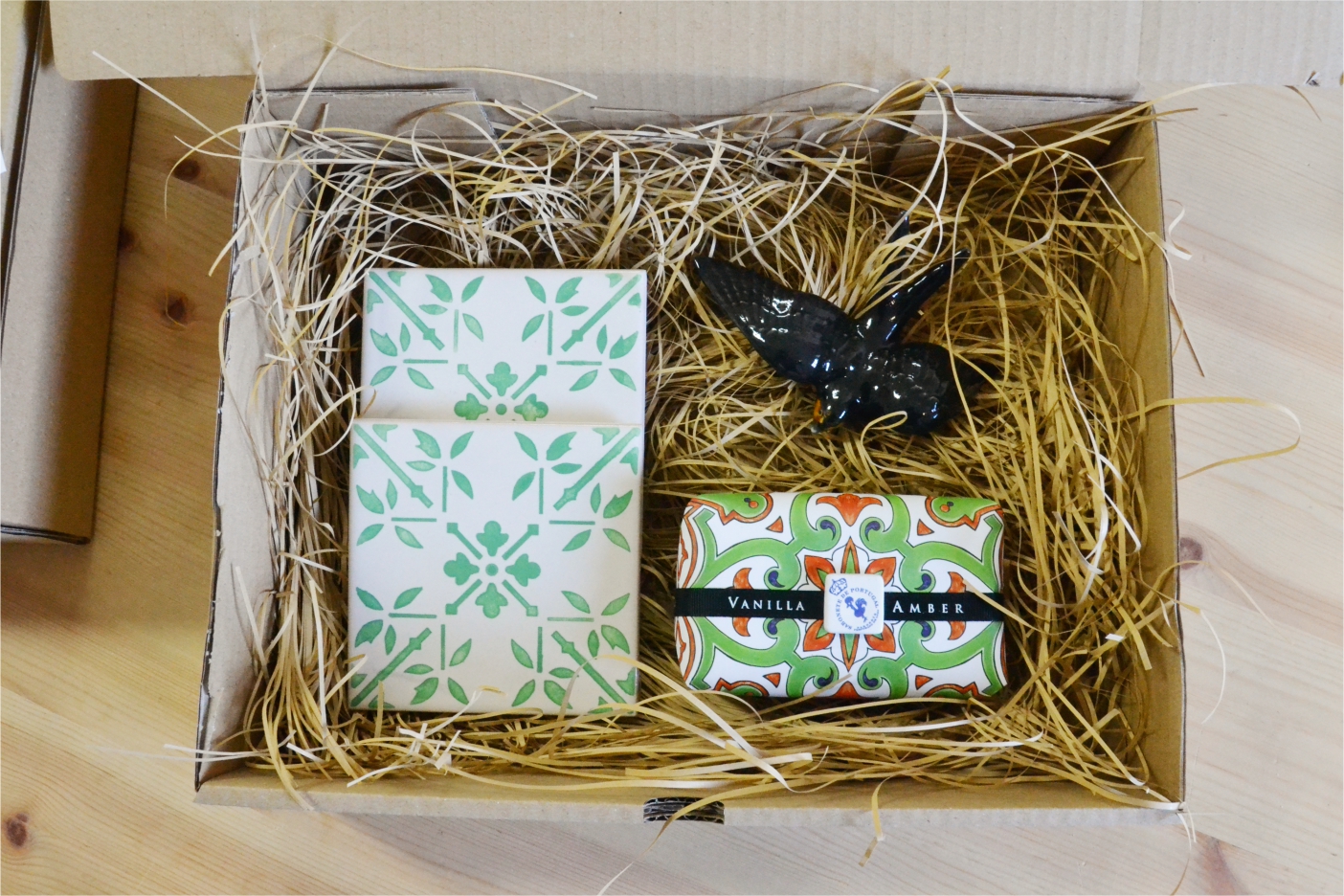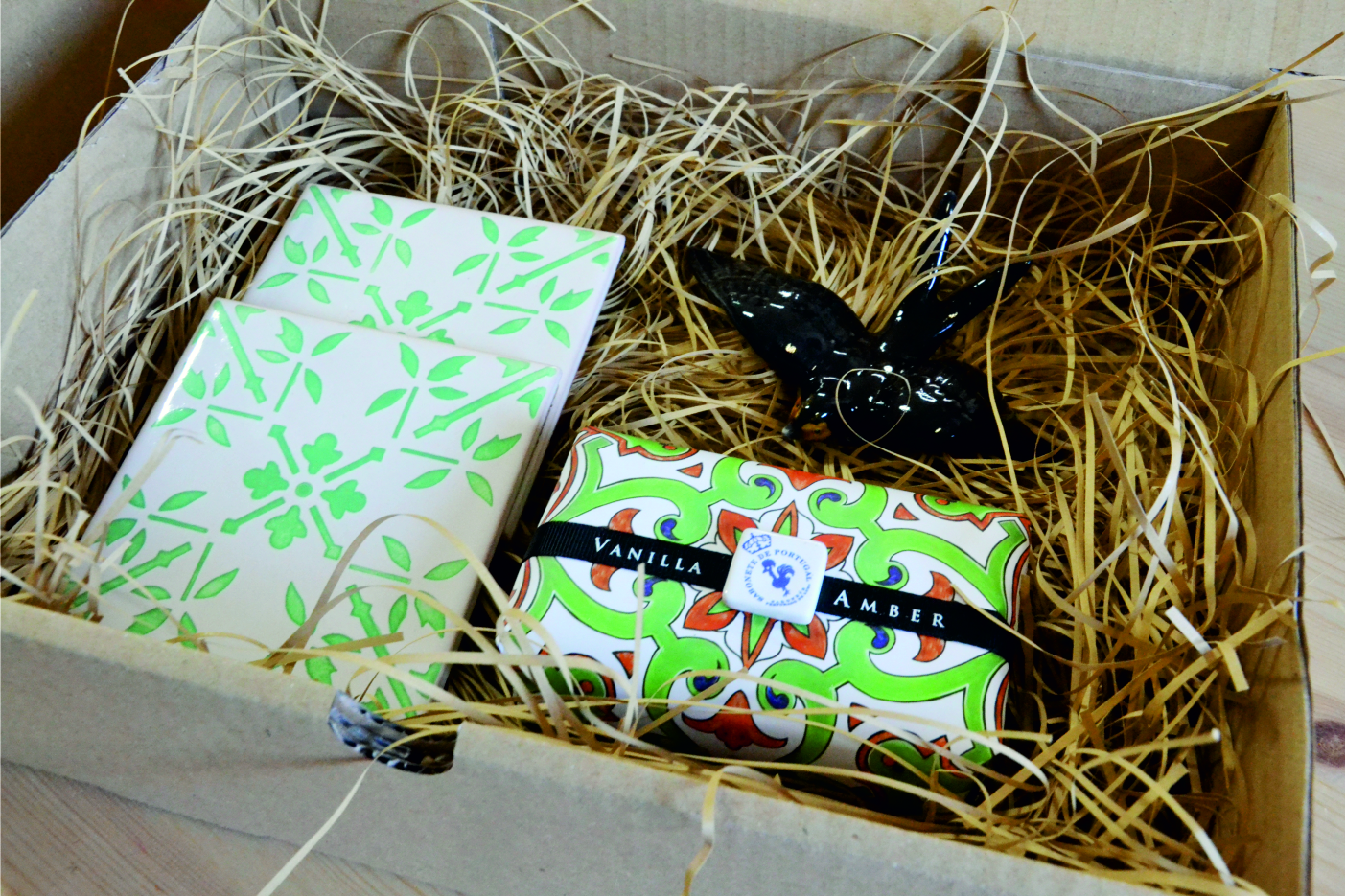Home 11_wedding & corporate gift Gift Box, made with love from Portugal, pack 3 Gift Box, made with love from Portugal, pack 3 Price on request Discount of %. Buy Contact Add to wishlist Surprise your family and friends with a perfect & unique gift box, made with love, from Portugal In our Gift Box you can find our decorative tiles/Coasters and products of excellence: - Set of 2 coasters in decorative tile hand painted 11x11cm with cork in back - 1 Swallow in ceramic hand painted in turquoise 8,50x 13 x 3 cm - 1 luxury soap of vanilla and amber fragance of 300 grs, Tiles collection produced by Castelbel Tags portugalgift boxmadeinportugalportuguese tilescoasterschristmas giftceramic coastersSwallowportuguese iconscastelbel soap Characteristics Share