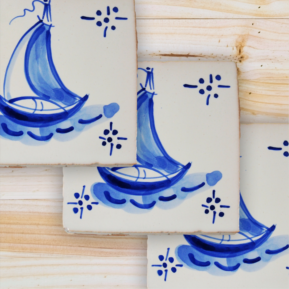 Portuguese blue tile, Hand Painted, replica of 18th century, Boat