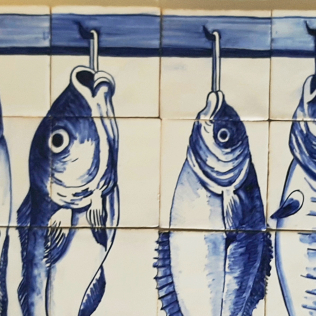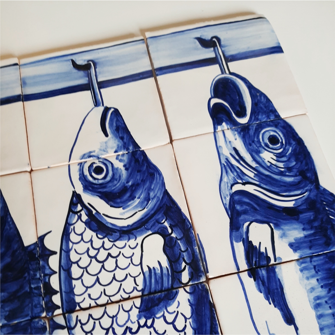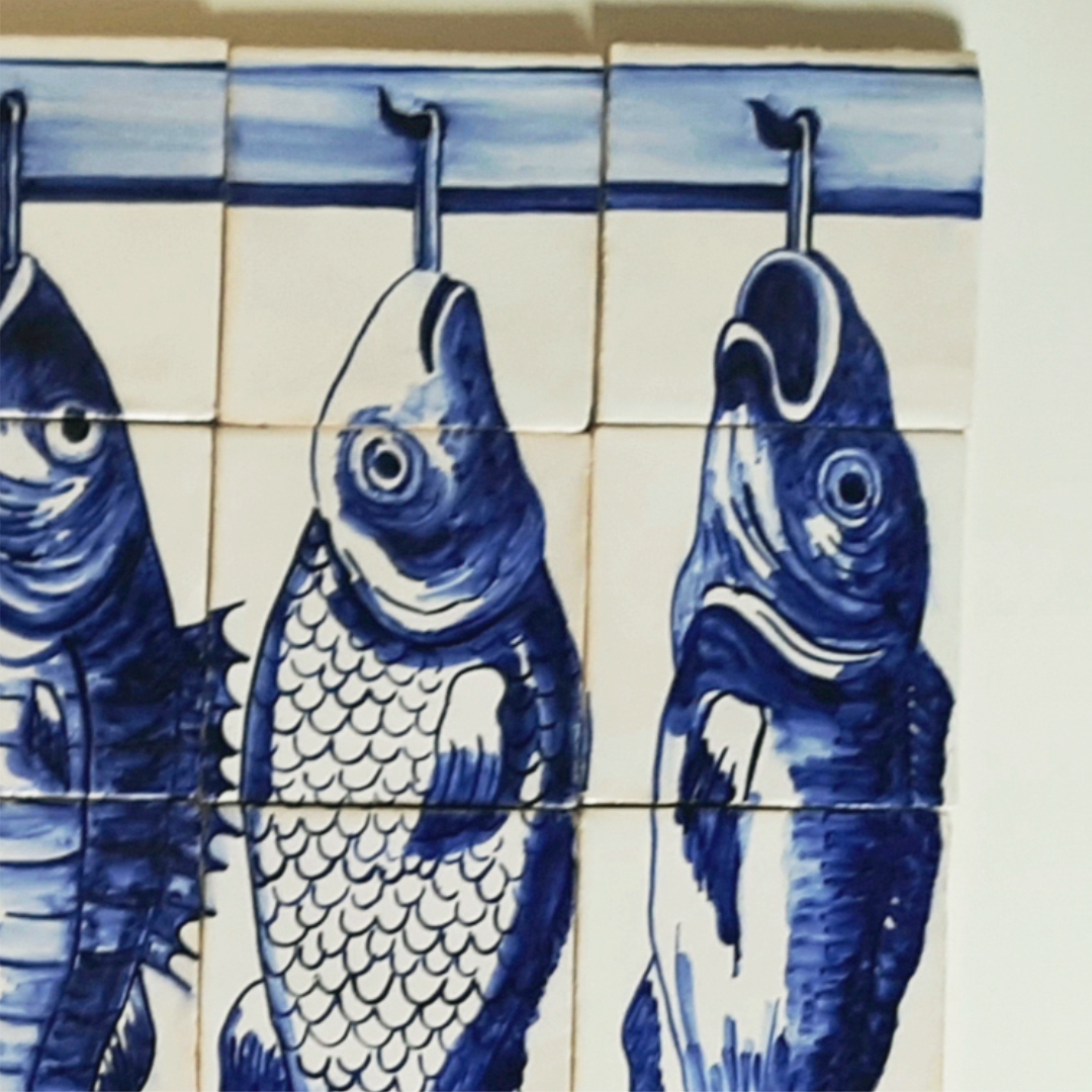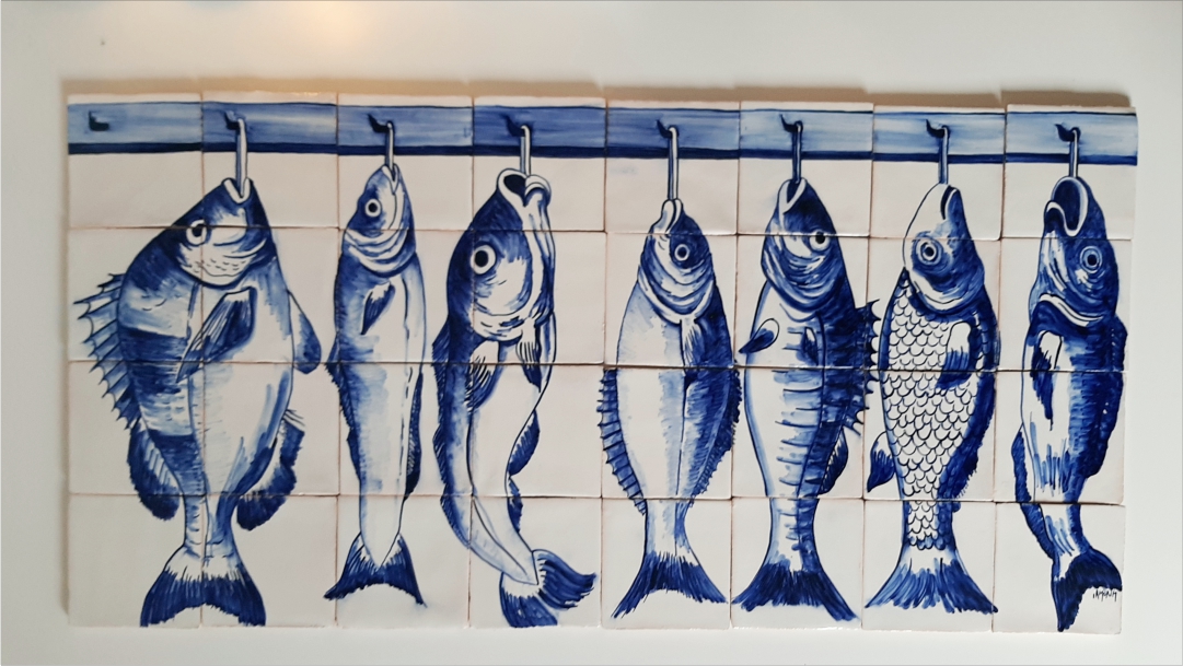 Portuguese replica Tile Mural, fish hang
