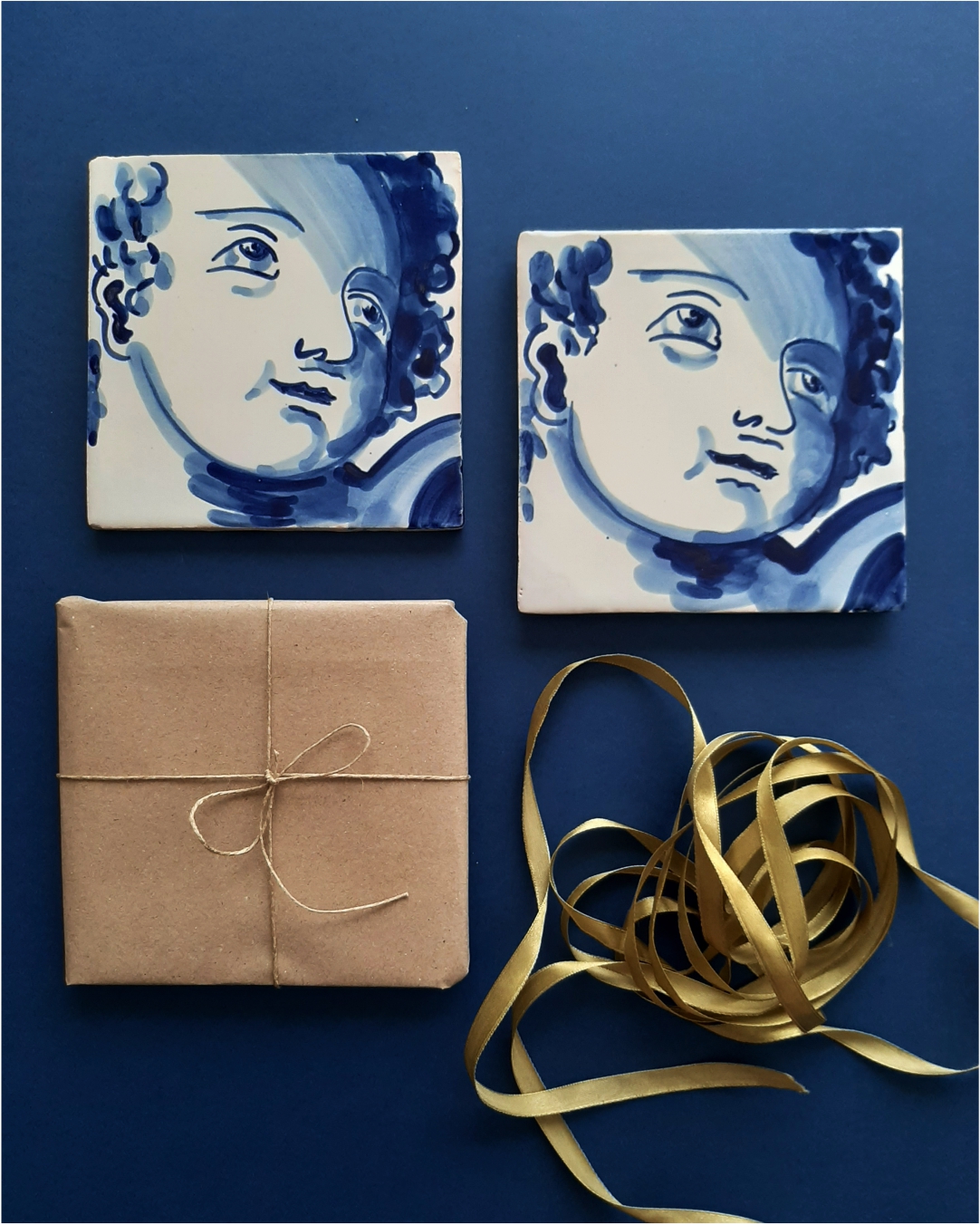 Portuguese tile, Hand Painted, replica of 18th century barroc angel