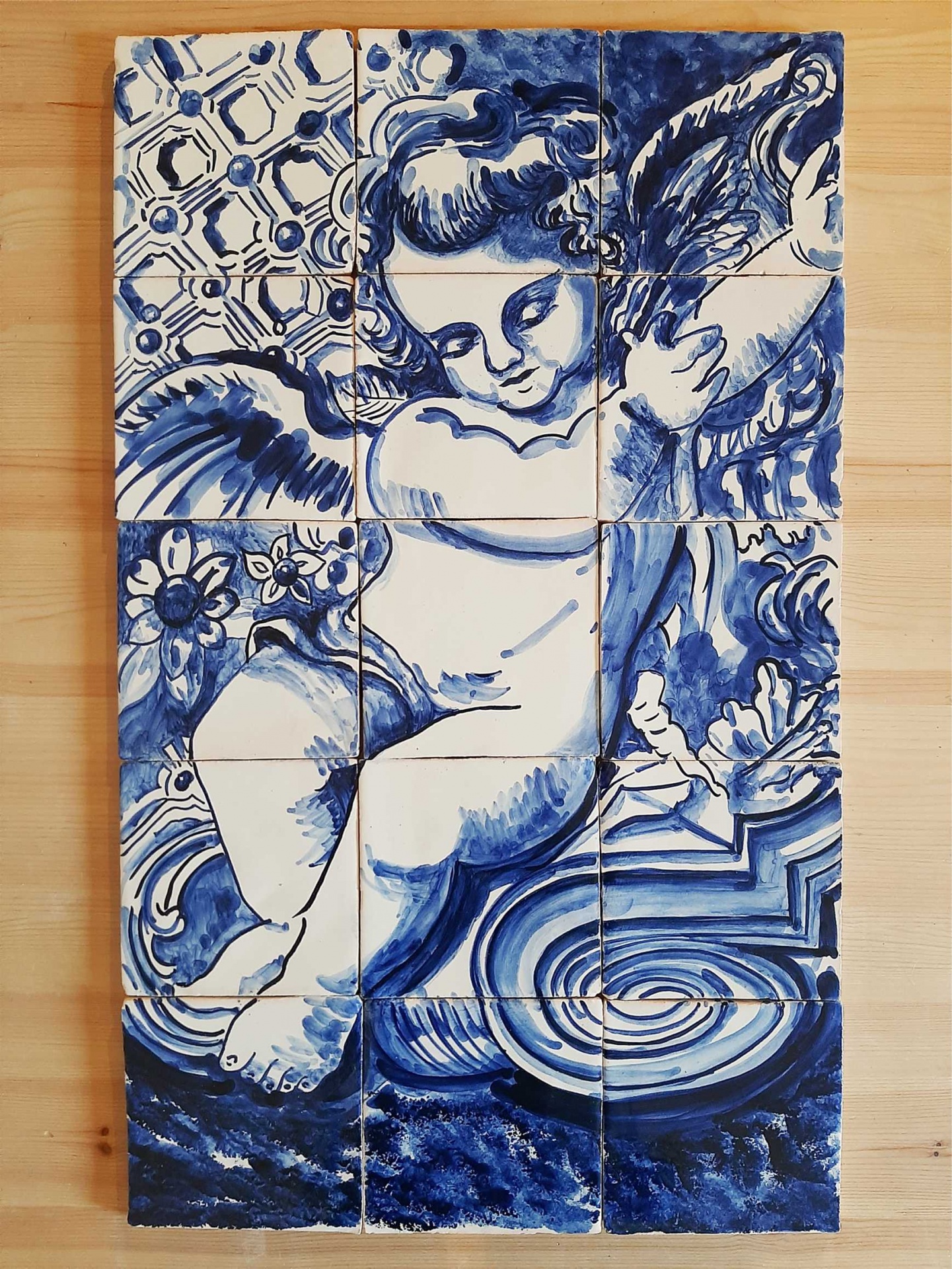 Portuguese Tiles, Decorative tile mural, Angel - Variation B