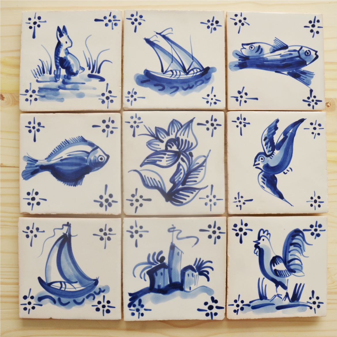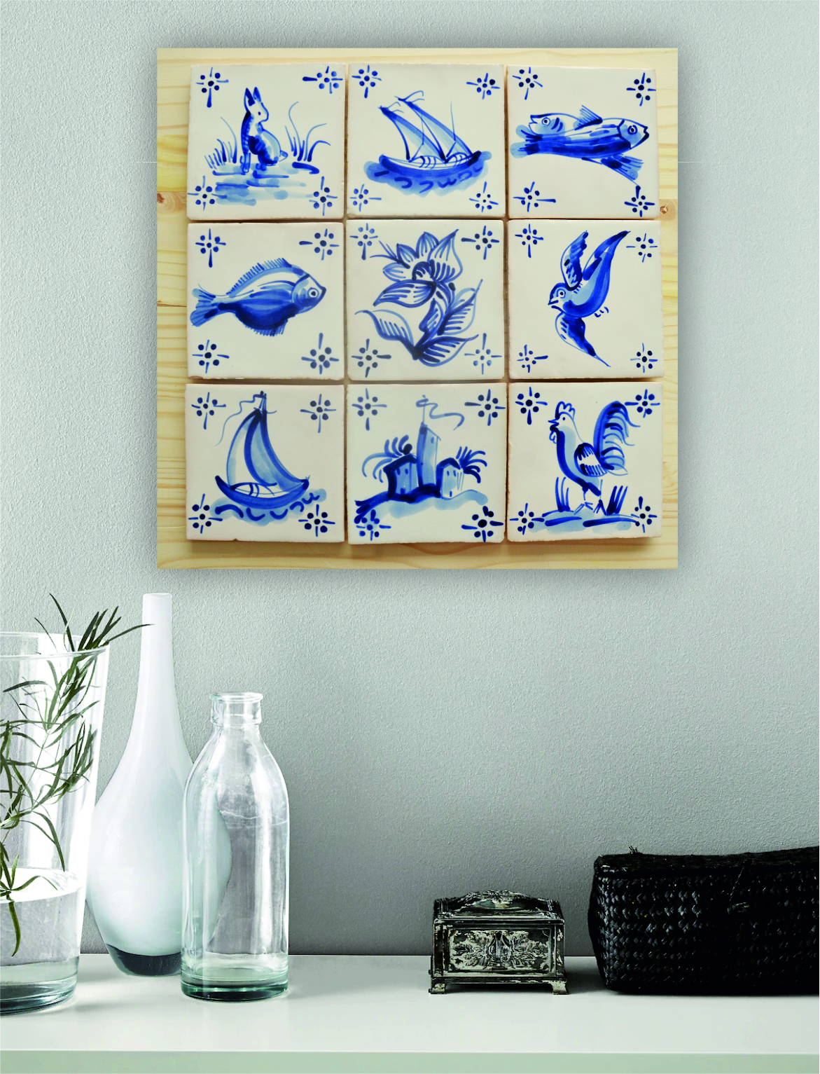 Tile mural composition of 9 replica tiles of 18th century