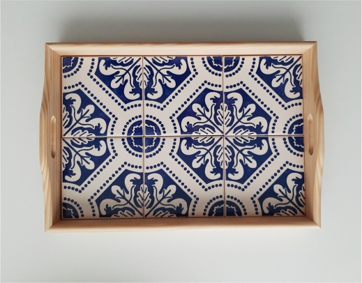 Home Medium Size Tray with portuguese tiles handpainted model B Tray with portuguese tiles handpainted model B 64,90 € Discount of %. IVA included. Buy Contact Add to wishlist Tray with portuguese tiles handpainted This tray covered with 6 hand-painted Portuguese tiles, allows it to be used as a trivet for hot dishes, with standing high temperatures. Size: 33 cm x 22 cm Alternatively it can be used as a decorative piece on a shelf The patterned tiles look lovely against the natural wood and would make a perfect gift for a loved one. Tags blue tilesperfect giftPortuguese tilesPortugalchristmas gift Share