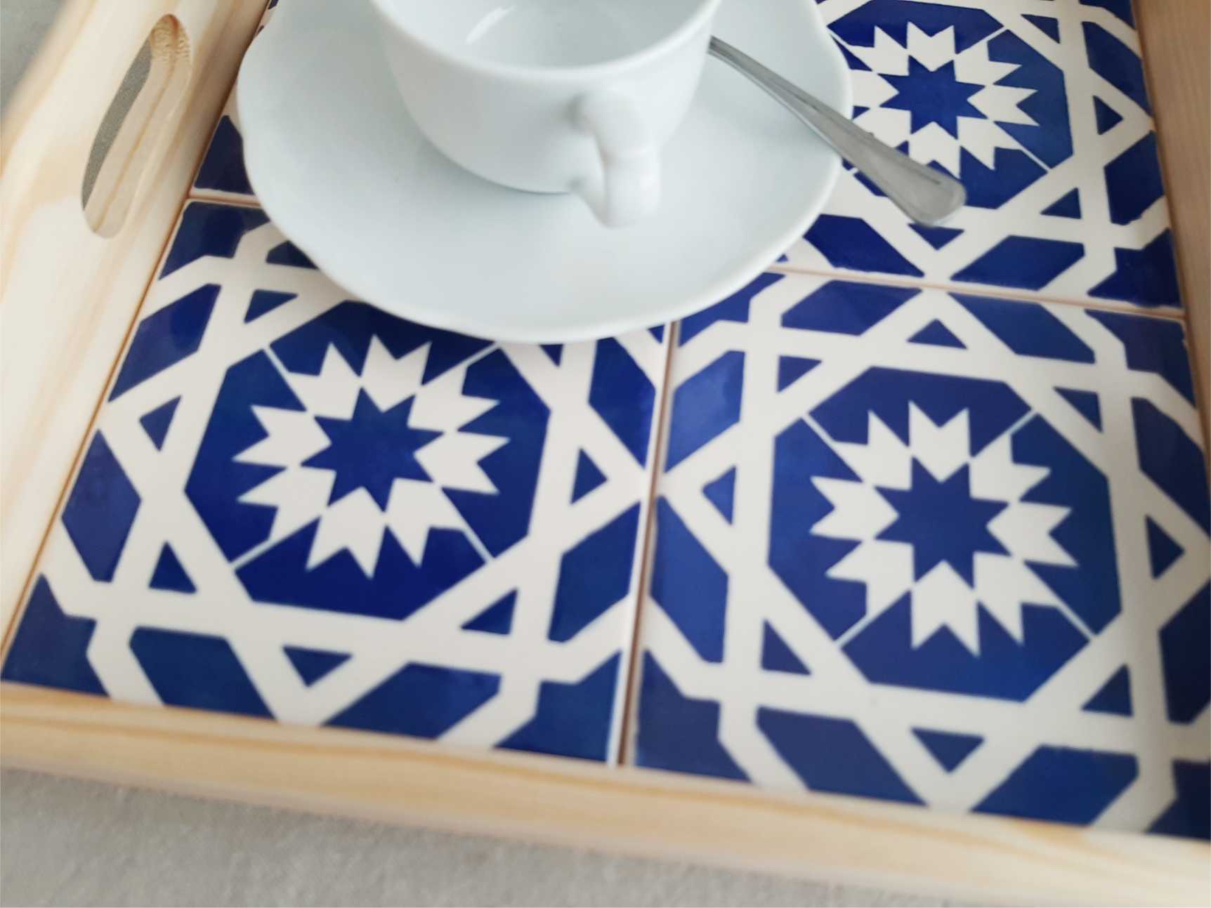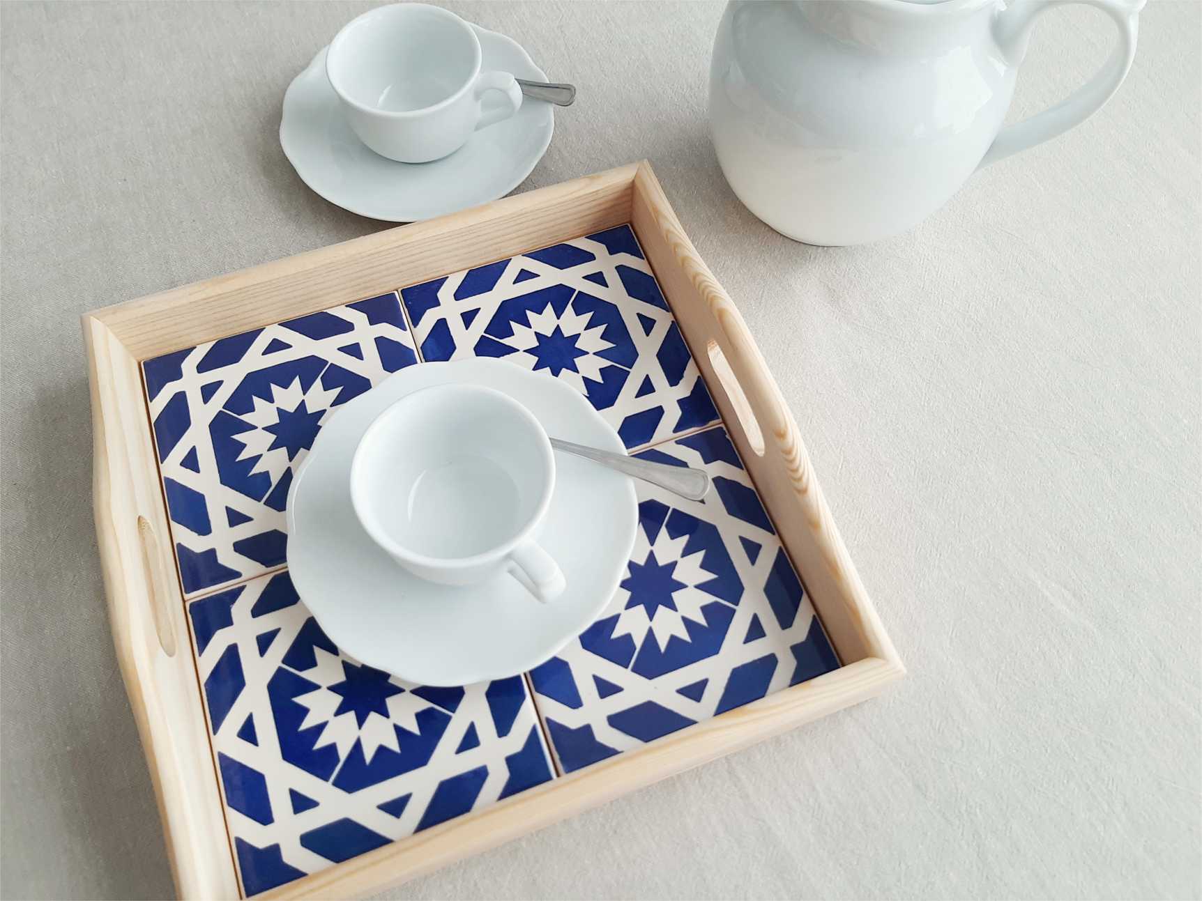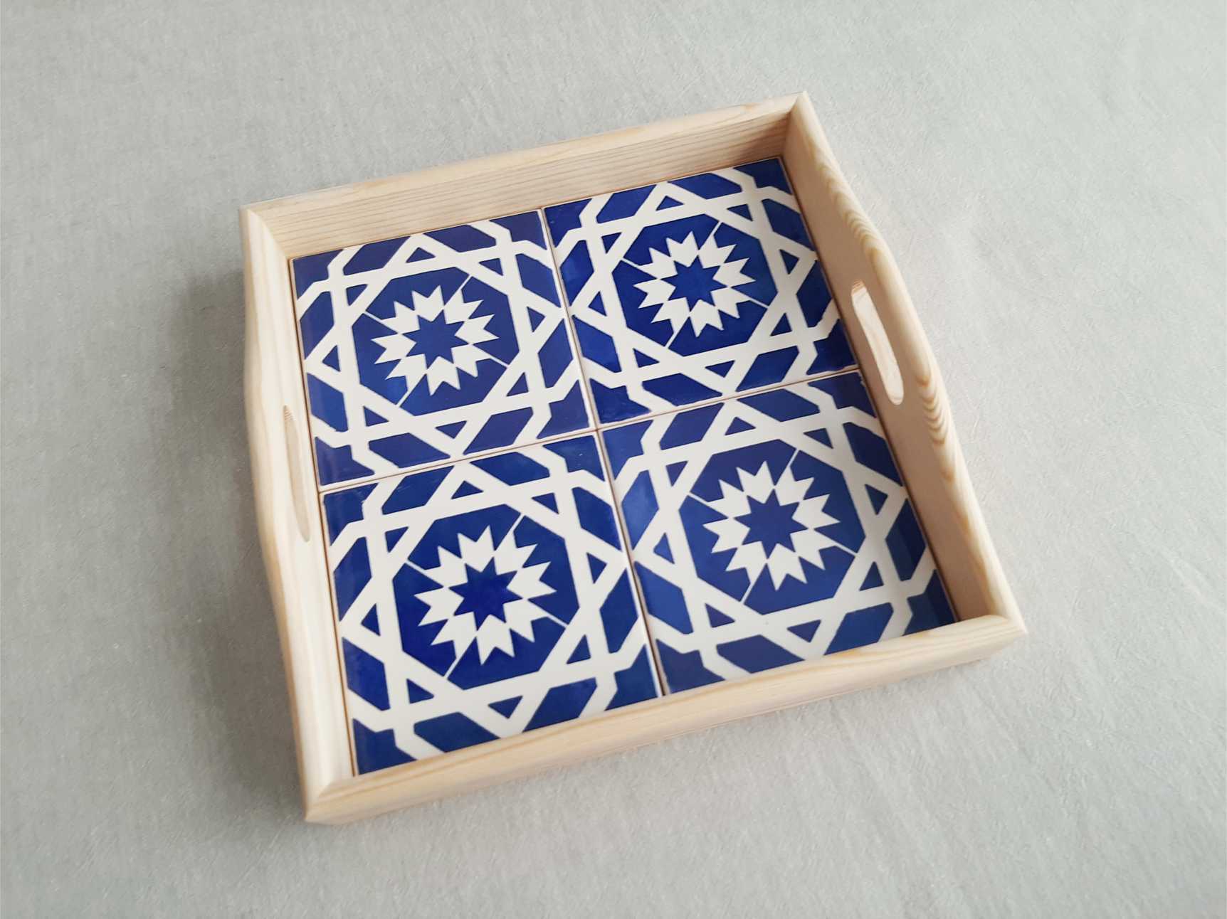 Home Small Size Tray with portuguese tiles handpainted model B Tray with portuguese tiles handpainted model B 49,90 € Discount of %. IVA included. Buy Contact Add to wishlist Tray with portuguese tiles handpainted This tray covered with 4 hand-painted Portuguese tiles, allows it to be used as a trivet for hot dishes, with standing high temperatures. Size: 22 cm x 22 cm Alternatively it can be used as a decorative piece on a shelf The patterned tiles look lovely against the natural wood and would make a perfect gift for a loved one. Tags blue tilestraylisbon tilespattern tileshome decorhome inspirationbest sellerPortuguese tiles Share
