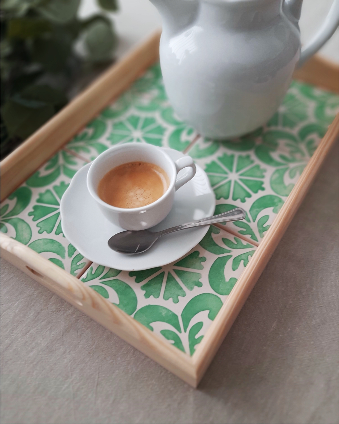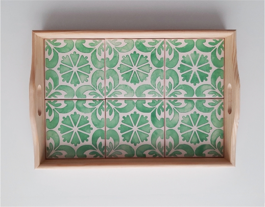 Home Medium Size Tray, with, portuguese tiles, handpainted, green tiles Tray, with, portuguese tiles, handpainted, green tiles 64,90 € Discount of %. IVA included. Buy Contact Add to wishlist Tray with portuguese tiles handpainted This original tray covered with 6 hand-painted Portuguese tiles, allows it to be used as a trivet for hot dishes, with standing high temperatures. Size: 33 cm x 22 cm Alternatively it can be used as a decorative piece on a shelf The patterned tiles look lovely against the natural wood and would make a perfect gift for a loved one. Tags Green aquapattern tilestrayperfect gifttable decor Share