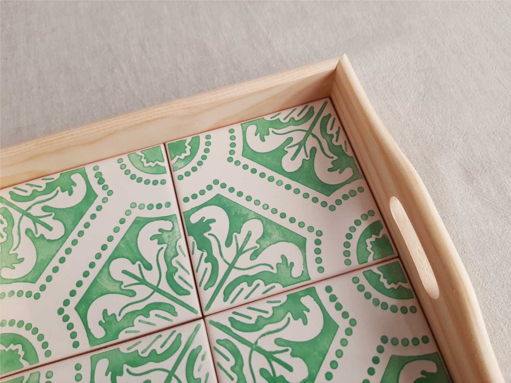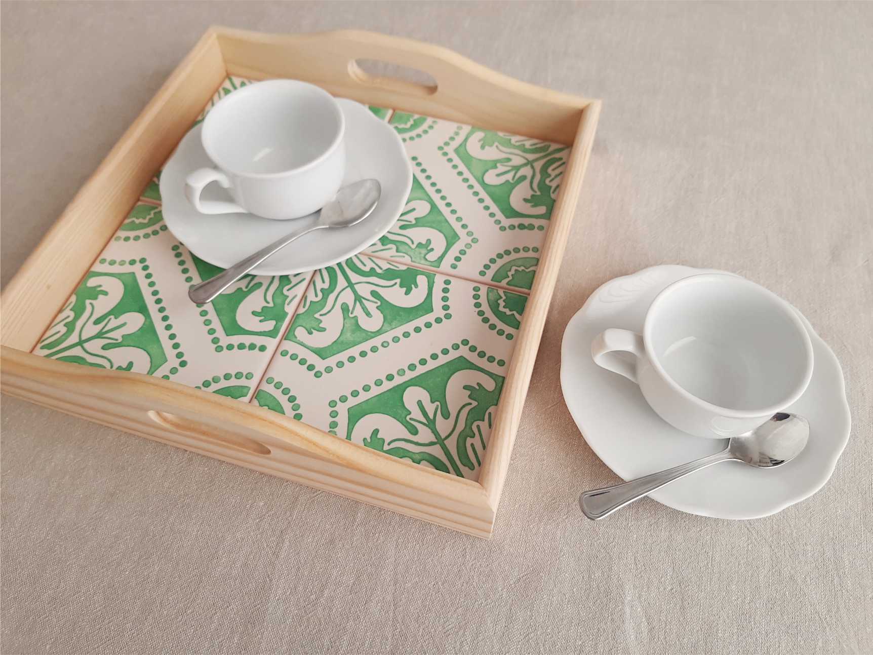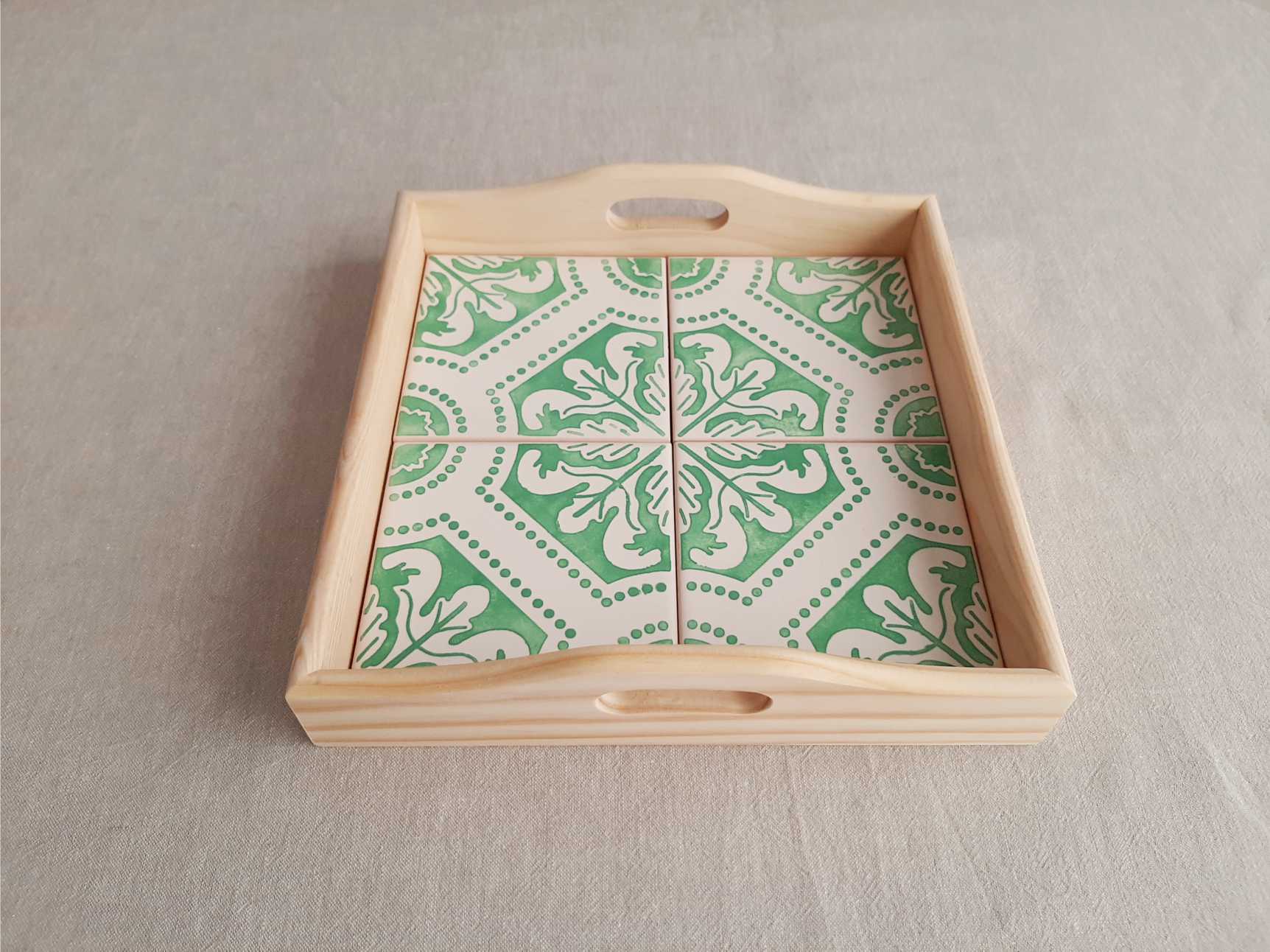 Home Small Size Tray with portuguese tiles handpainted model G Tray with portuguese tiles handpainted model G 49,90 € Discount of %. IVA included. Buy Contact Add to wishlist Tray with portuguese tiles handpainted This tray covered with 4 hand-painted Portuguese tiles, allows it to be used as a trivet for hot dishes, with standing high temperatures. Size: 22 cm x 22 cm Alternatively it can be used as a decorative piece on a shelf The patterned tiles look lovely against the natural wood and would make a perfect gift for a loved one. Tags traylisbon tilespattern tileshome decorhome inspirationbest sellerchristmas giftGreen aquaPortuguese tiles Share